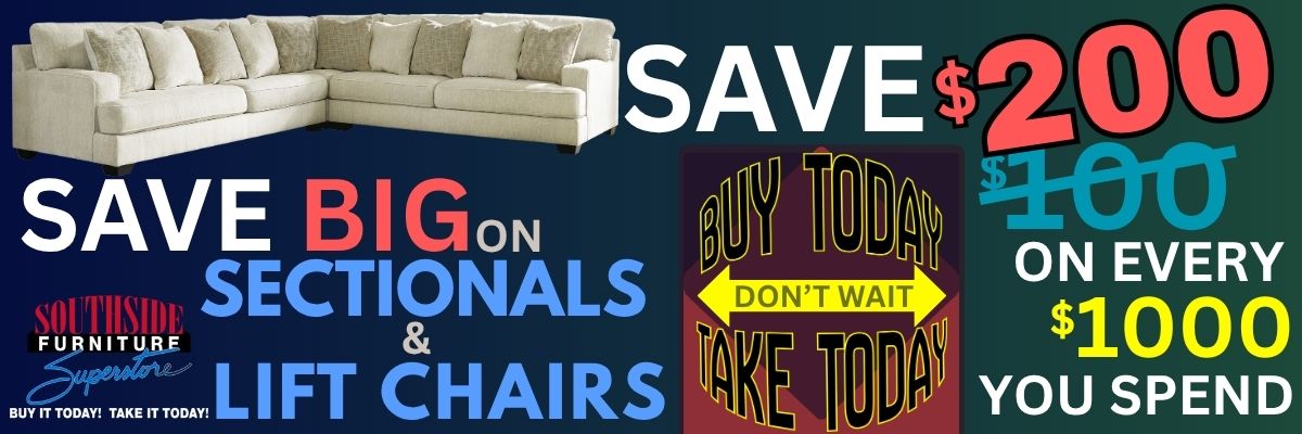 We are the largest furniture store in Tyler with over 50,000 square feet of showroom floor. We carry many brands that are made in the U.S.A. such as, Ashley Furniture, Best Home Furnishings, Serta, and more. Our Specialty here is, BUY IT TODAY, TAKE IT TODAY”, which means that we have hundreds of items in stock ready for you to have day of purchase. Our goal at SouthSide Furniture is to offer you great and competitive prices as well as the best customer service which we have been doing since 1982. We are also locally owned and operated.