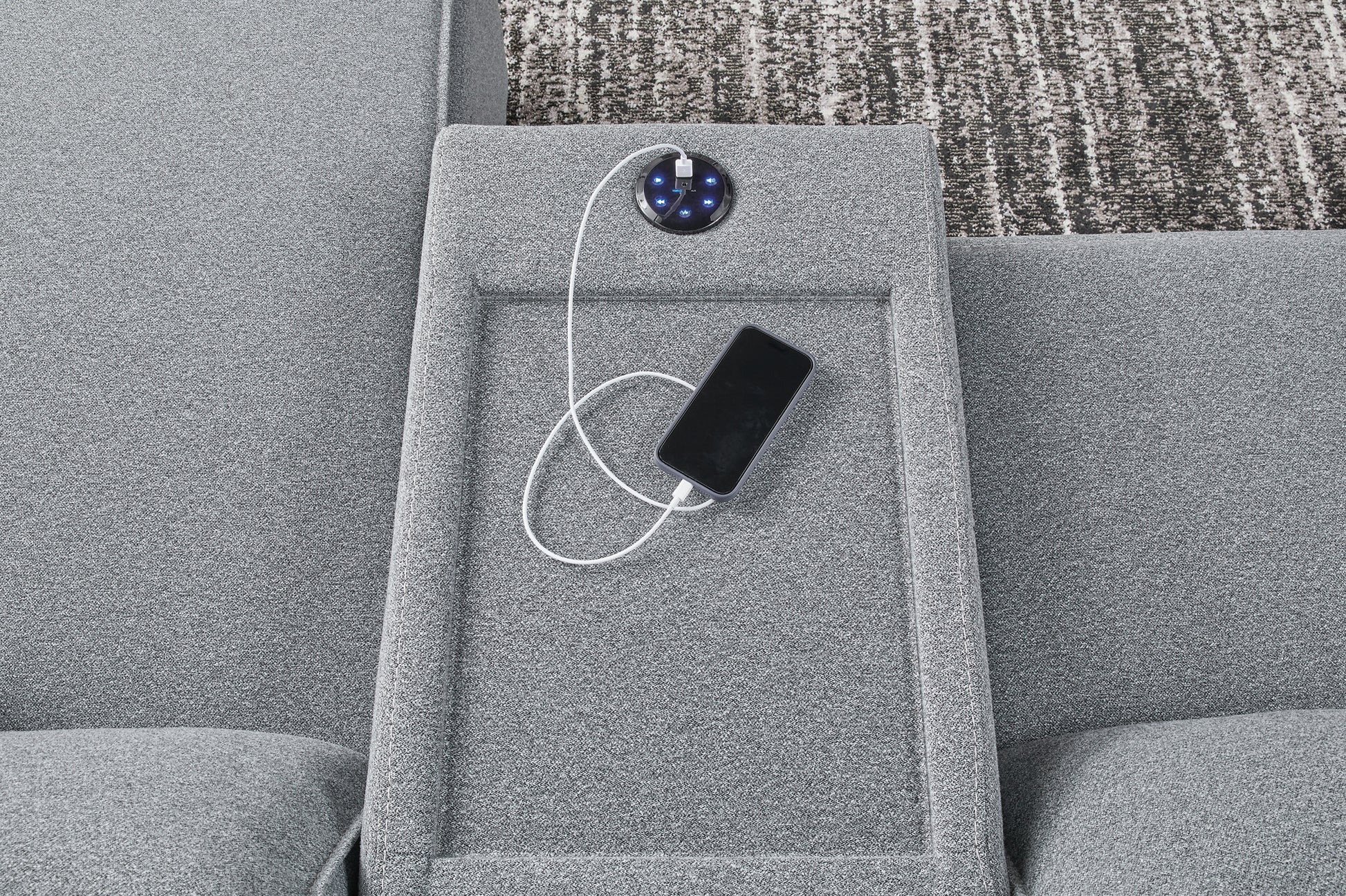 | Details | Includes 6 modular pieces: left-arm facing power reclining back chaise, power armless recliner, armless chair, console, wedge and right-arm facing power recliner, "Left-arm" and "right-arm" describe the position of the arm when you face the piece, Versatile modular pieces fit together in a variety of configurations, One-touch power control with adjustable positions, Easy View™ adjustable headrest and zero-draw USB port, Zero-draw technology only consumes power when the USB receptacle is in use, Corner-blocked frame with metal reinforced seat, Attached seat and back cushions; high-quality foam cushions wrapped in poly fiber, Polyester upholstery; Next-Gen Nuvella™ is a family-friendly fabric that is soft, easy to clean, stain-resistant and durable, Clean fabric with mild soap and water, let air dry; for stubborn stains, use a solution of 4 oz. bleach to 28 oz. water, Throw pillows with easy-to-remove zippered covers for machine washing; pillows with soft polyfill, Console with plexiglass top and 2 cup holders, Zero wall recliner design requires minimal space between wall and chair back, Power cord included; UL Listed | |